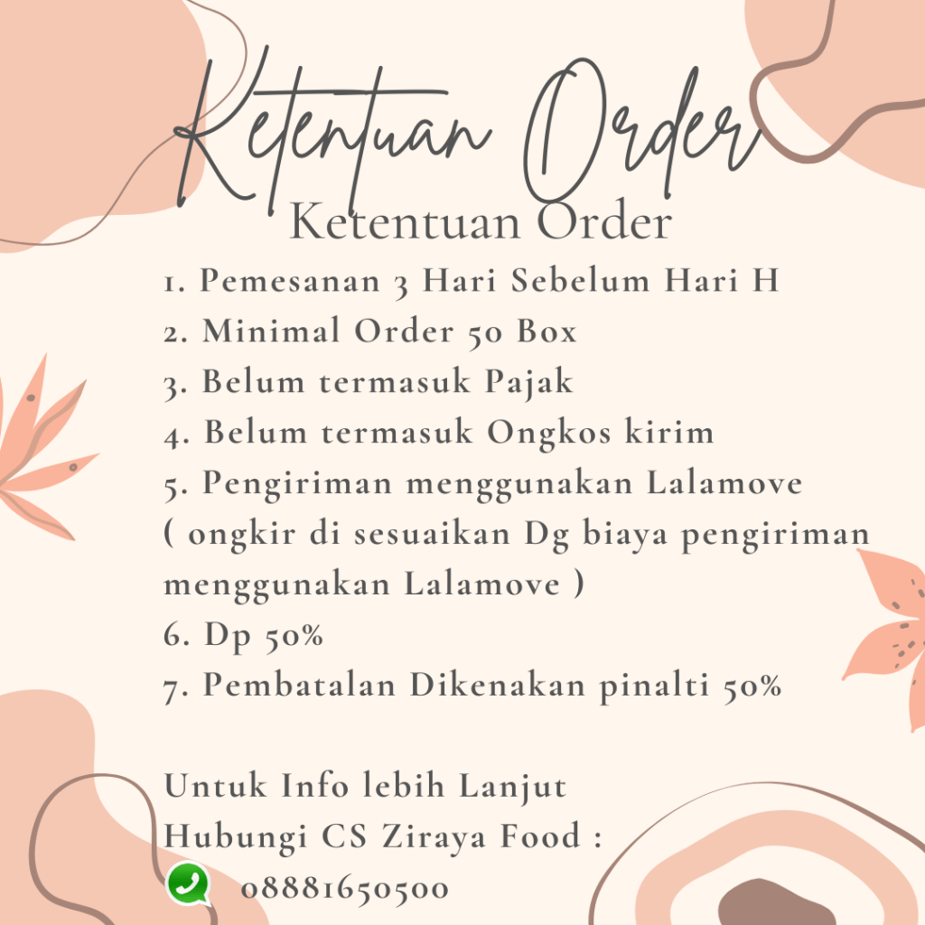 Kami di Ziraya Food & Cake memiliki satu tujuan utama: membuat setiap momen Anda menjadi istimewa dengan hidangan lezat dan kue yang memukau. Dengan berbagai pilihan menu yang dikemas dengan cinta dan perhatian, kami siap untuk menghadirkan pengalaman kuliner yang tak terlupakan.
